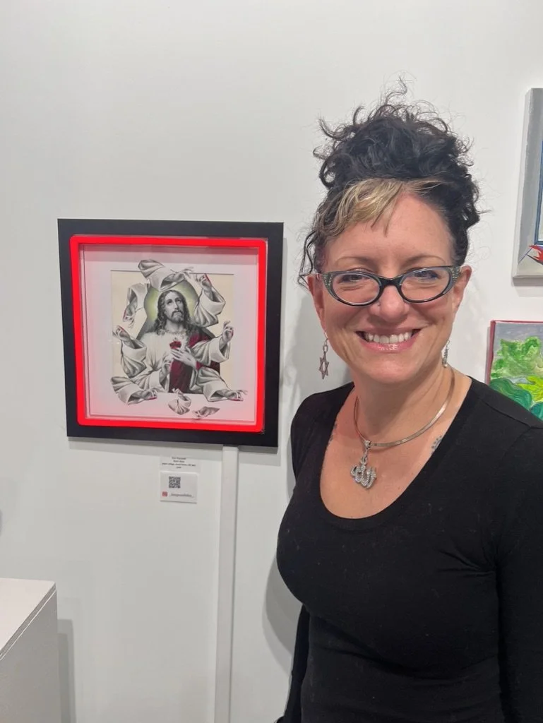 “Neon Jesus” (2023) Paper collage, wood frame, LED light14 x 14 in.Exhibited at Woman Made Gallery through January 2024. Sold.